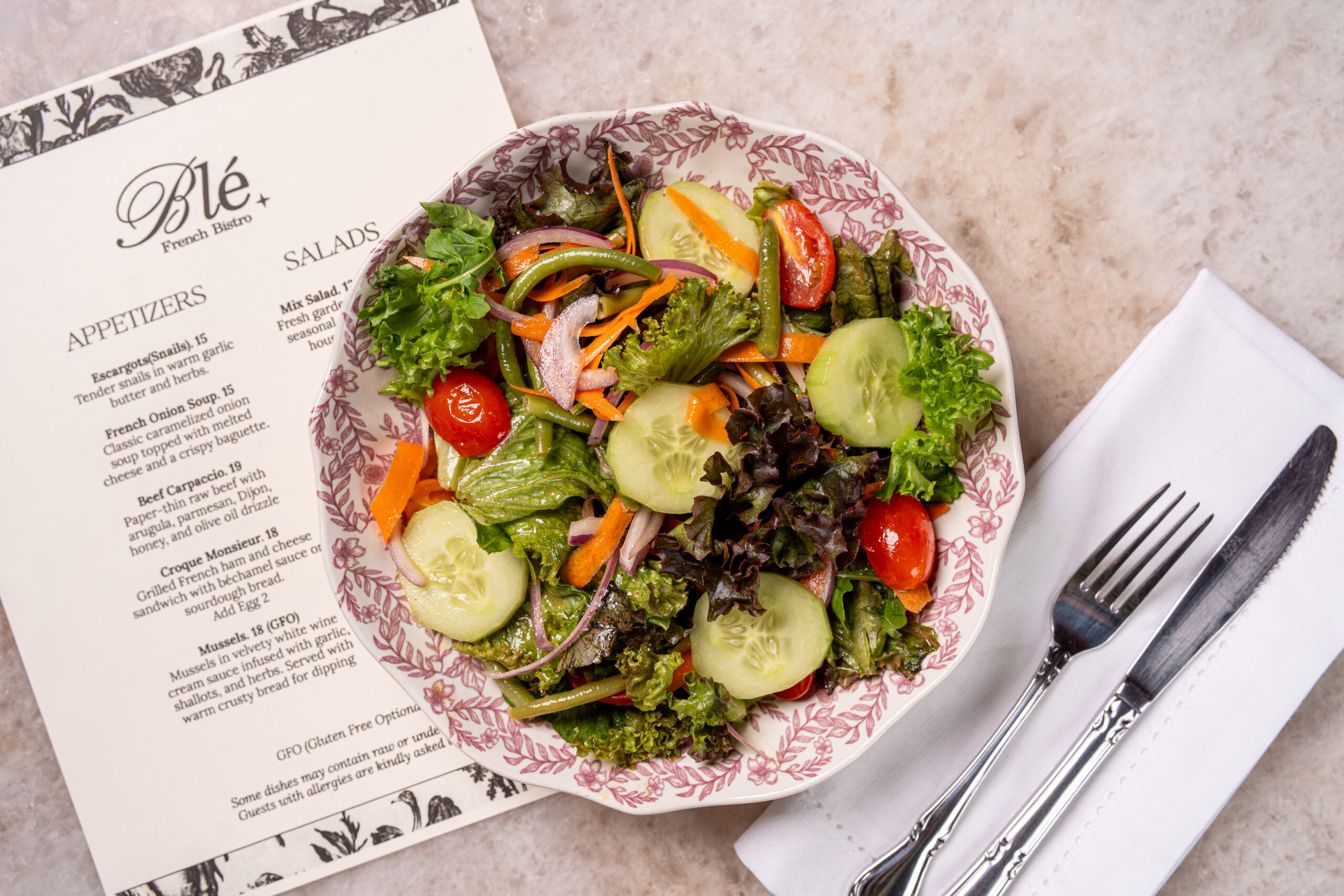 At Blé French Bistro, we bring the charm of French dining to every plate. Inspired by classic flavors and crafted with modern technique, our space is designed for warm gatherings, memorable meals, and a true taste of French hospitality.